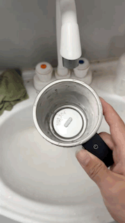The SpinnyCup™ doesn’t just stir your drinks, it also measures the temperature of your beverage! Its built-in sensor shows the exact temperature on a small, easy-to-read display, so you can enjoy every drink at the perfect warmth.